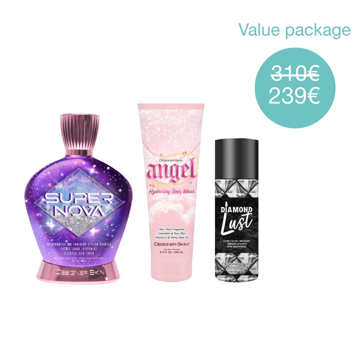 Saavuta erakordselt tume, sügav ja niisutatud päevitus näole ja kehale – ühe tervikliku komplektiga. See value-komplekt on loodud intensiivse päevituse armastajale, kes soovib luksuslikku tulemust ja naha eest hoolt kandes.